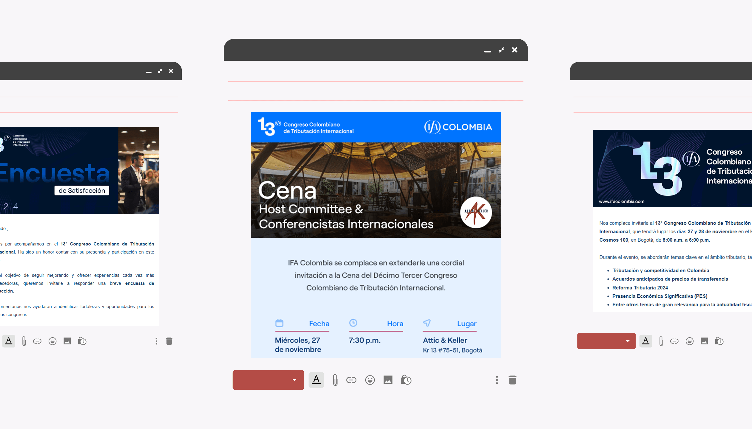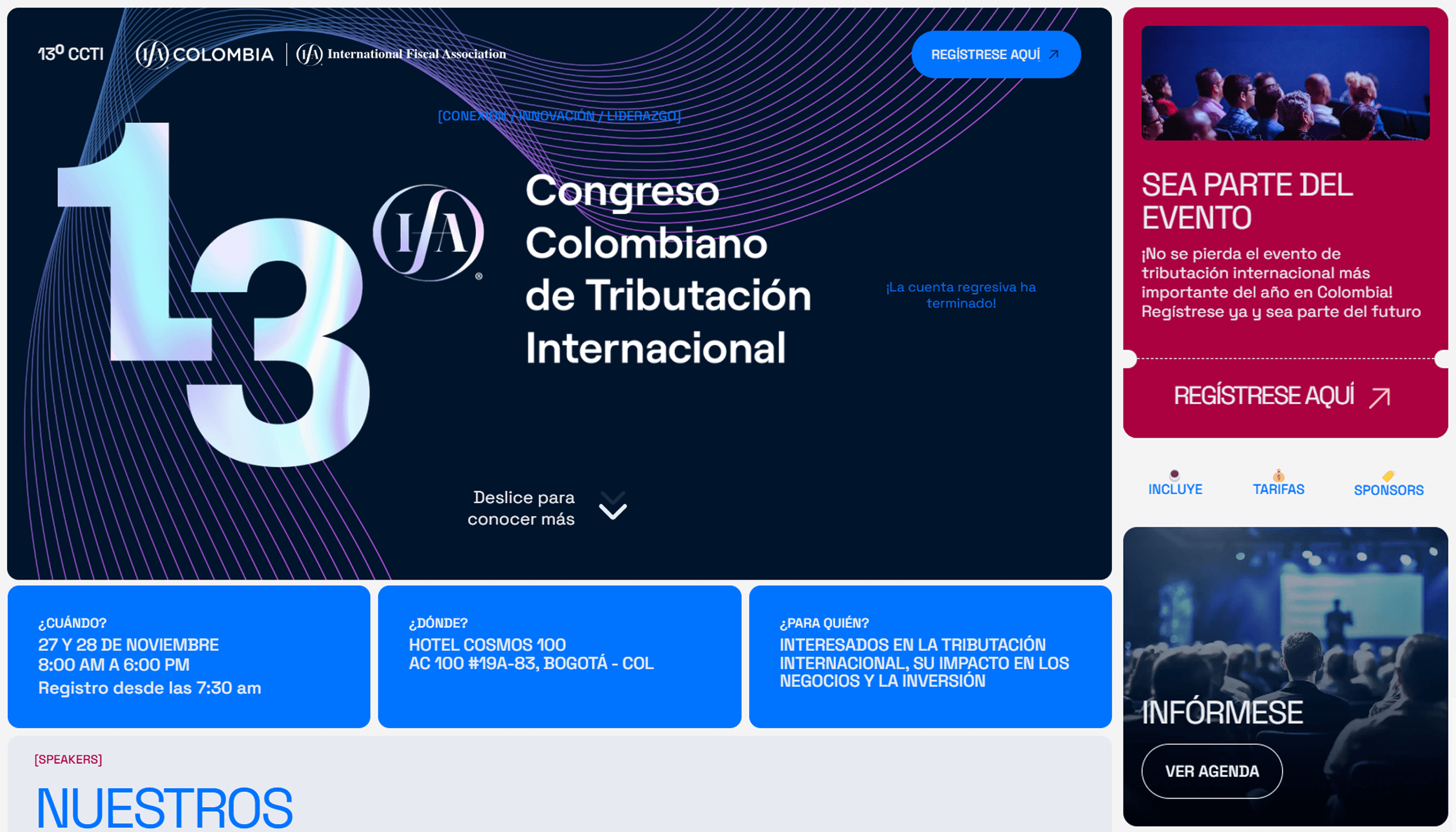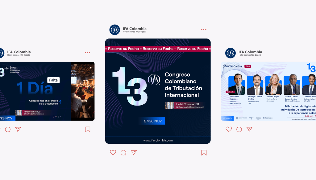 El 13° Congreso Colombiano de Tributación Internacional, organizado por IFA Colombia, representó un desafío creativo y logístico para garantizar un evento memorable. Desde la identidad visual hasta la experiencia del usuario, cada elemento fue cuidadosamente desarrollado para consolidar este encuentro como un referente en el ámbito tributario internacional.